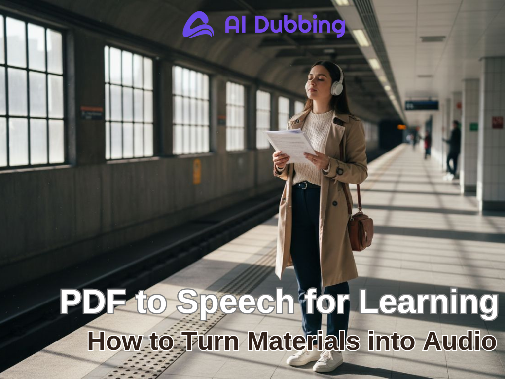 PDF to Speech helps you convert PDF to audio for learning, revision, and audiobooks. Discover flexible learning with AIDubbing.